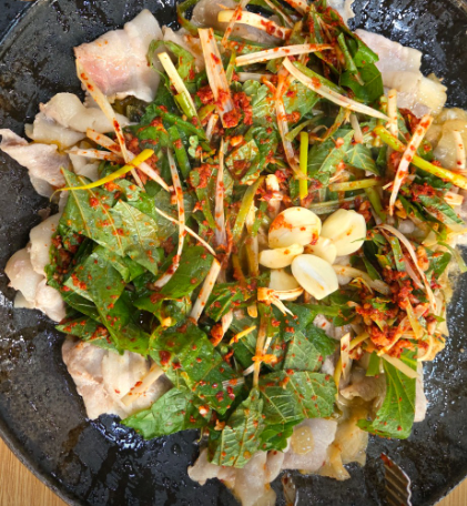깻잎에 싸서 한입 베어물면 묵은지의 산미, 고기의 고소함, 불향이 동시에 퍼지며 ‘진짜 노포의 맛’을 느낄 수 있습니다.