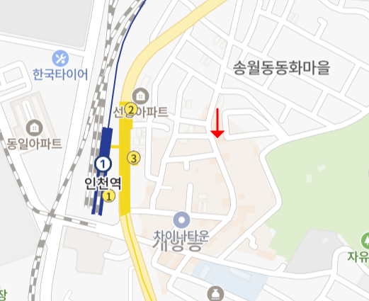 A. 인천역 3번 출구에서 도보로 5~7분 거리입니다.