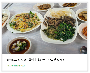 ▶생생정보 청송 영숙할매네 손칼국수 나물전 맛집 위치◀