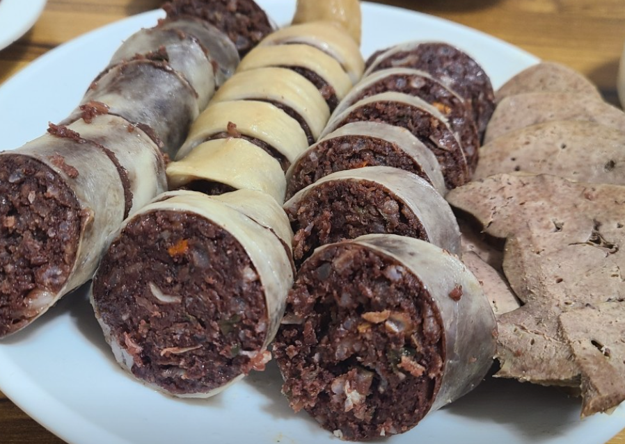 일반적인 당면순대가 아니라 고기와 선지, 들깨 향이 풍부한 토종순대 스타일이다.