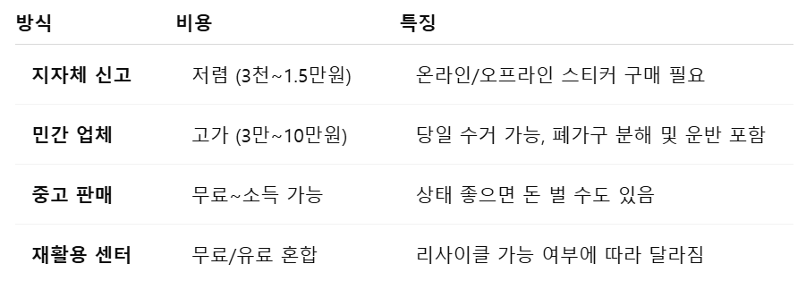 방문 수거 + 분해 작업 포함 시: 추가 2~3만 원