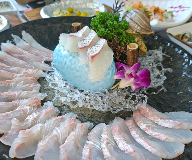 A. 네! 광어, 우럭, 도미, 대방어, 멍게, 생굴 등 다양한 활어회와 해산물 요리가 준비돼 있어요.