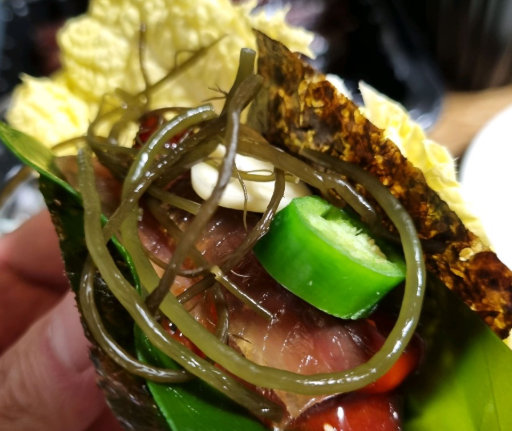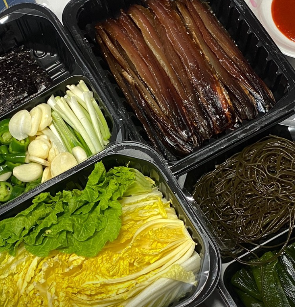 야채, 김, 마늘쫑까지 함께 곁들이면, 겨울밤 소주 한 잔이 절로 생각납니다.