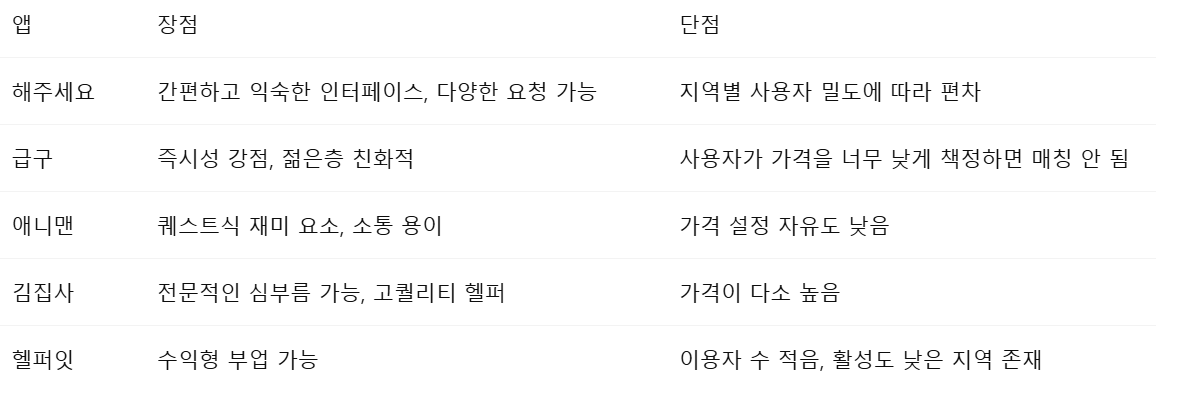 3.‘해주세요·급구’ 등 5개 앱 비교 분석