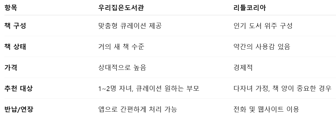5. 우리집은도서관 vs 리틀코리아, 핵심 비교 포인트
